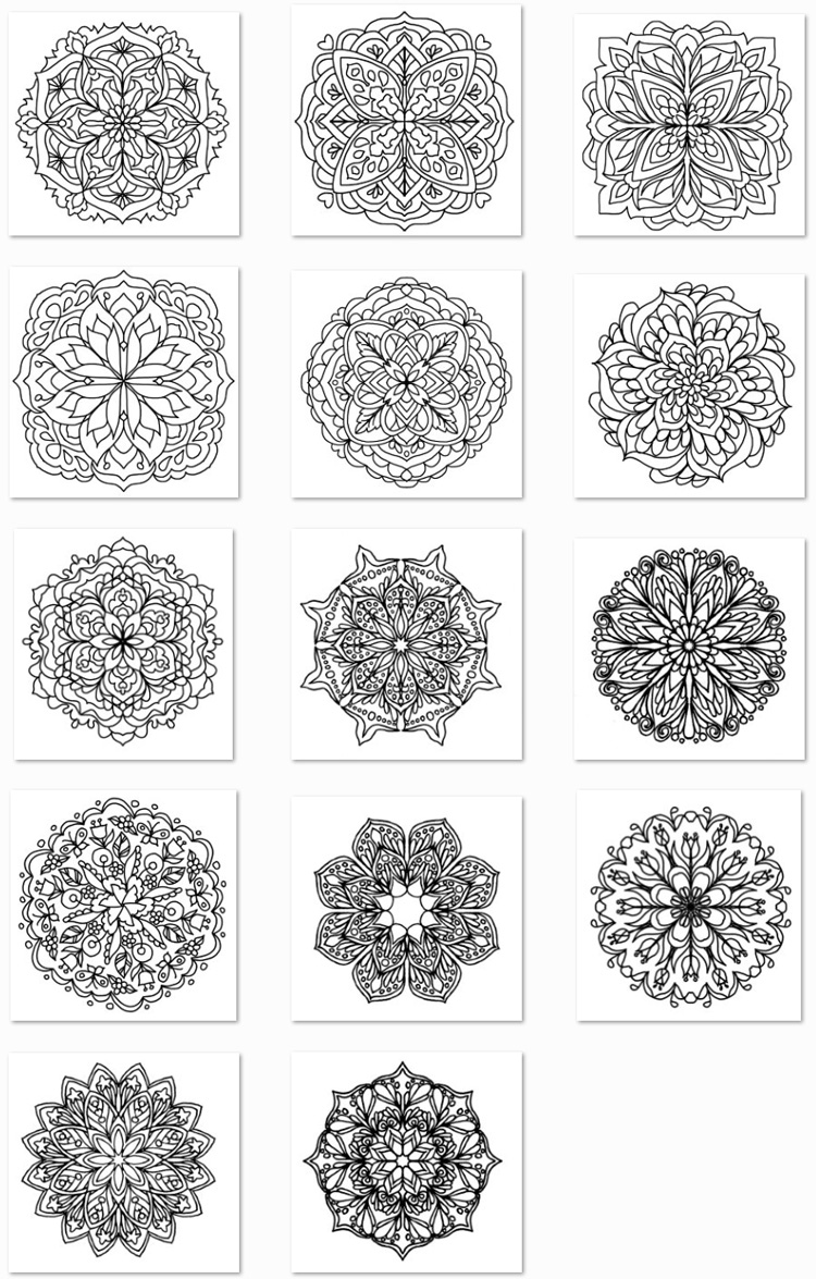 These books have 50 hand drawn mandalas that are simple, with bold lines and larger spaces, but they are anything but boring! They are perfect for days when you don’t feel like facing an intricate coloring page or want room to do some shading and blending. The travel size book is perfect for taking with you any place you have to wait. The travel size book is top bound so both left handed and right handed colorists can easily reach the page, and they are printed single sided to allow for the use of markers (slip a couple pieces of paper or a piece of cardstock behind the page you are working on to avoid bleed through to other pages.